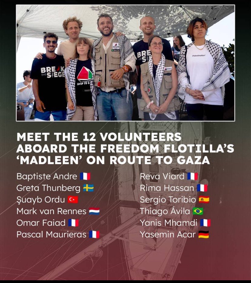 Her story inspired the Freedom Flotilla Coalition to name a vessel the Madleen, launched June 1, 2025, from Catania, Sicily, to break the blockade with aid, carrying 12 activists like Greta Thunberg and Rima Hassan. Madleen called it “the highest form of humanity and self-sacrifice” (Al Jazeera, 2025).