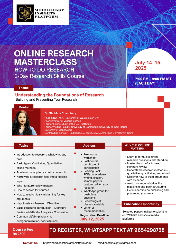 If these concepts feel unfamiliar—or if you’ve heard them but never explored them in depth—I’d love to invite you to a 2-Day Online Crash Course on Research Skills that I’m personally leading on July 14–15, from 7–9 PM IST each day.
